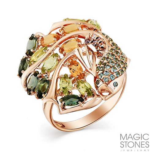 Вставка турмалин, фианит, хризолит, цитрин
